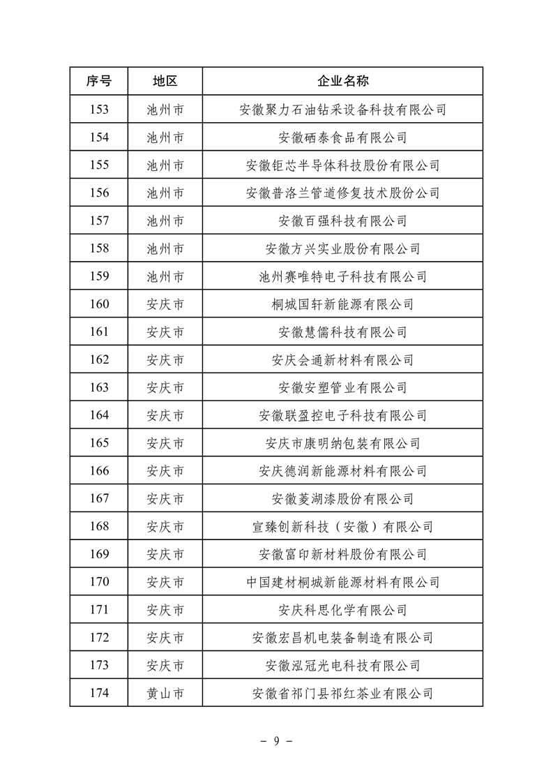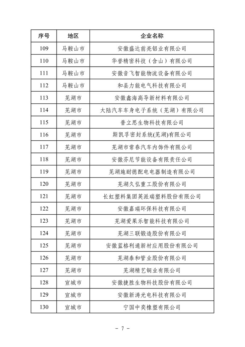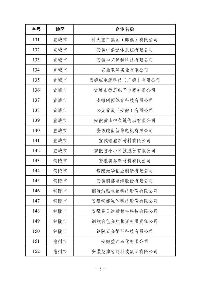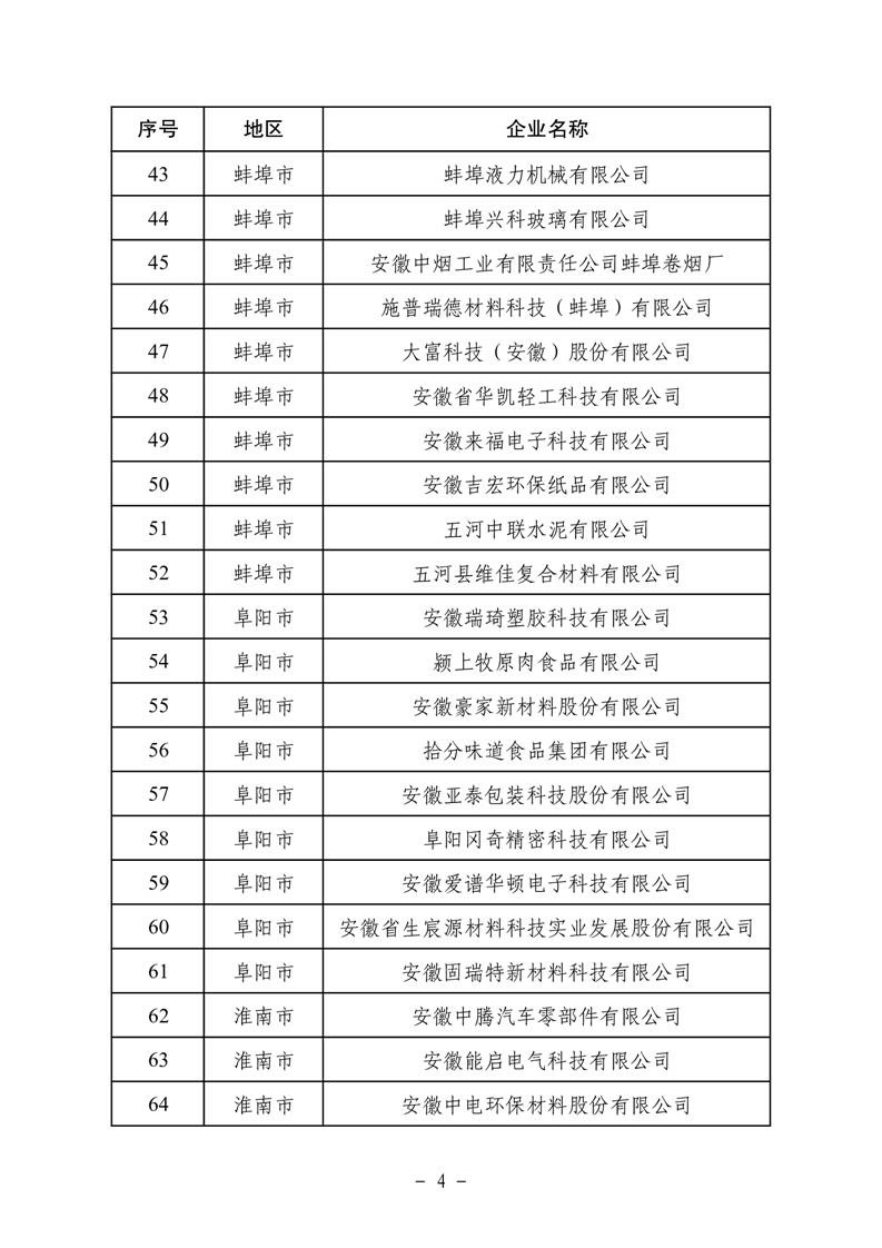 关于公布2025年安徽省绿色工厂名单的通知 |