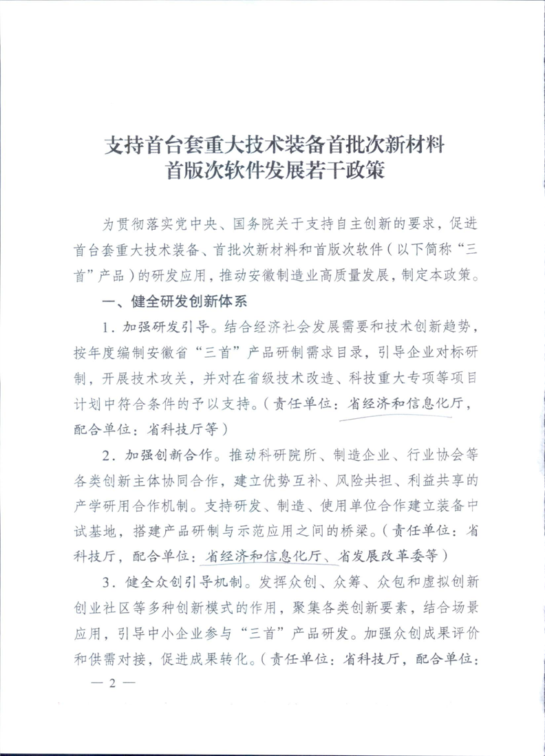 【“三首一保”政策资金补助】关于印发支持首台套重大技术装备首批次新材料首版次软件发展若干政策的通知