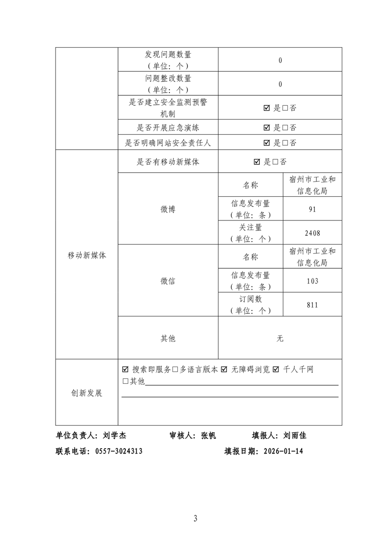宿州市工业和信息化局2025年度政府网站工作报表
