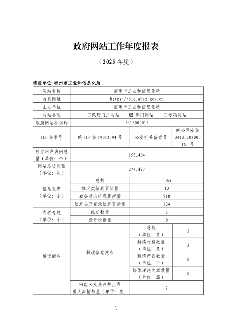 宿州市工业和信息化局2025年度政府网站工作报表 |