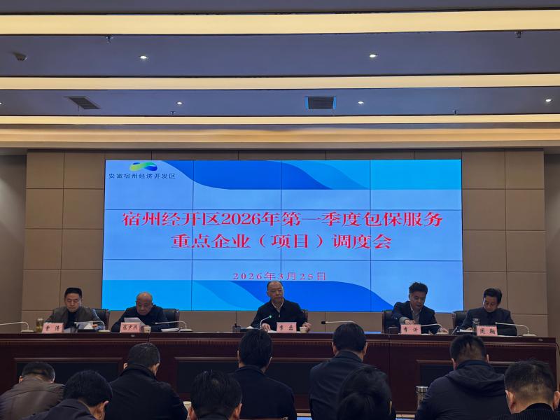 2026年3月25日上午,宿州经开区党工委书记、管委会主任李磊主持召开一季度包保服务重点企业(项目)调度会。经开区班子成员,各包保组成员单位主要负责人及全体包保专员参加会议。
