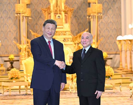 习近平强调,中方珍视同柬埔寨王室的友谊,高度评价多年来柬王室为中柬友好事业作出的重要贡献。新形势下,中柬双方要珍惜并传承中国老一辈领导人和西哈努克太皇共同缔造的中柬铁杆友谊,赋予中柬命运共同体新的时代内涵,服务各自国家发展和人民福祉,为构建周边命运共同体、推动构建人类命运共同体作出更大贡献。中方坚定支持柬埔寨保持稳定、加快发展、改善民生,走符合本国国情的发展道路,相信中国式现代化将为柬埔寨等周边国家带来更多机遇,相信构建新时代全天候中柬命运共同体一定会谱写壮丽篇章。